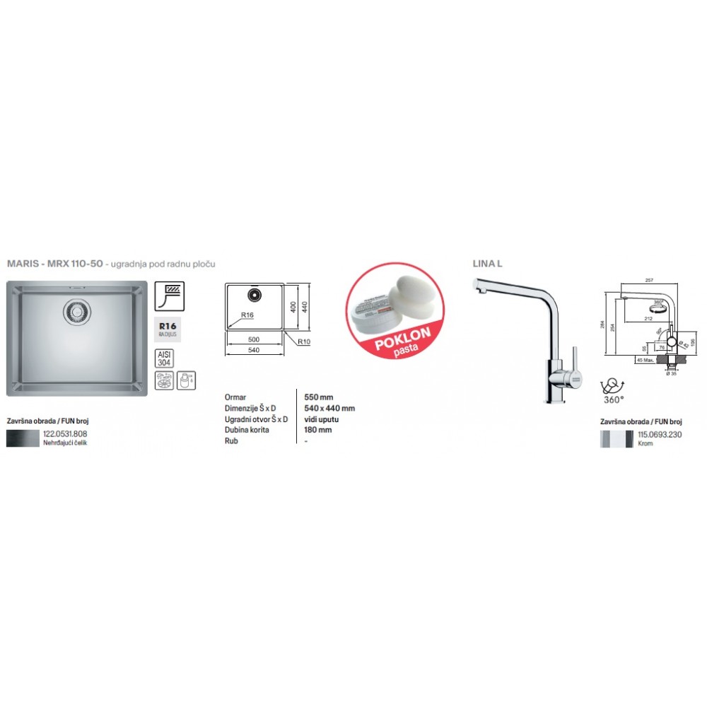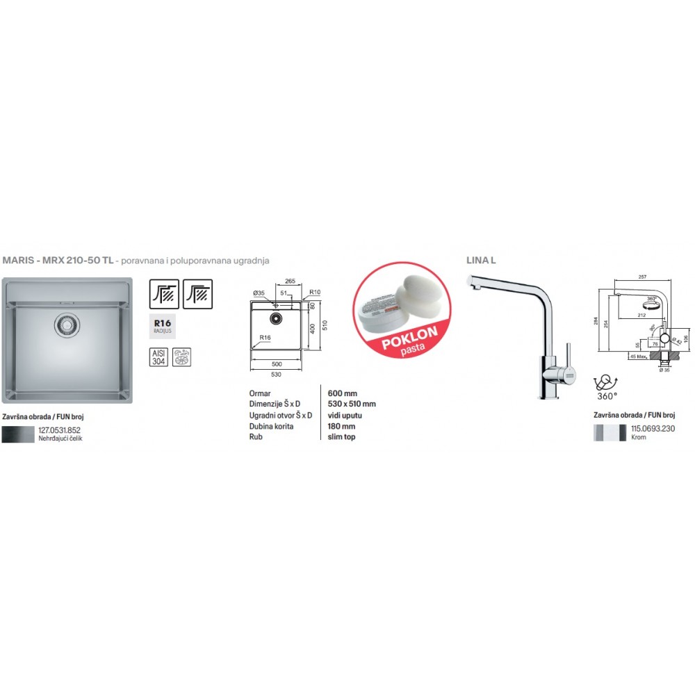 Novo Quick view Add to cart Remove from Wishlist Add to Wishlist Add to Compare Franke set sudoper i slavina MARIS - MRX 110-50 + Lina L Cijena 399,00 €