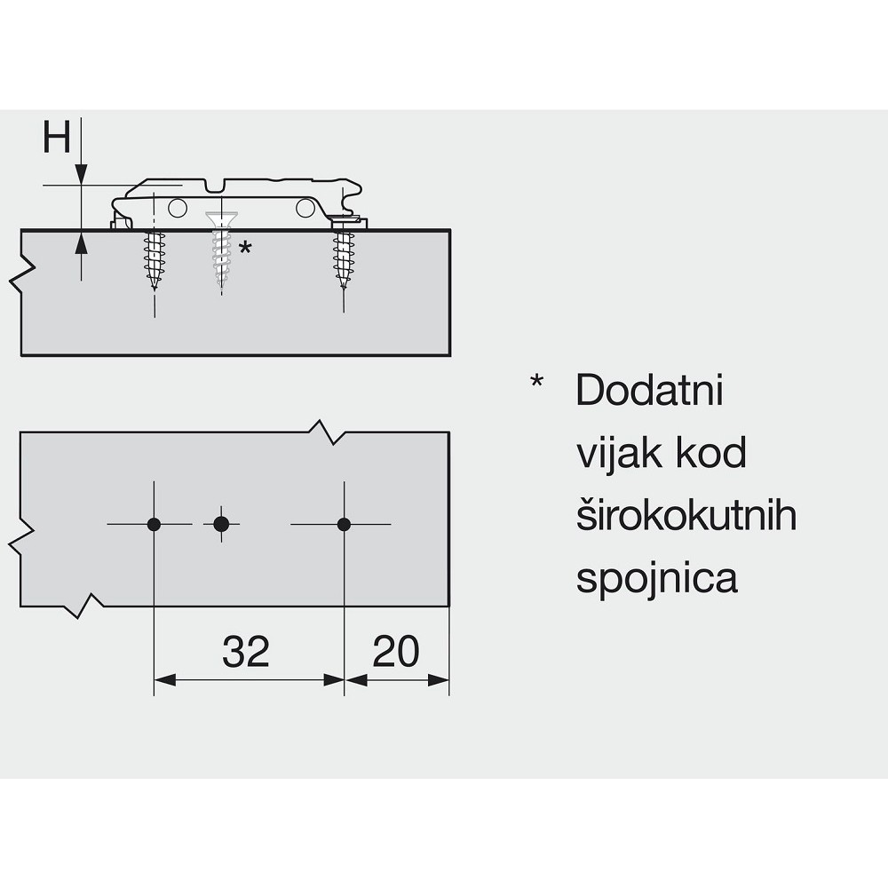 BLUM CLIP ONYX ekscentar podložna pločica ravna, čelik, vijci, razmak 0 mm