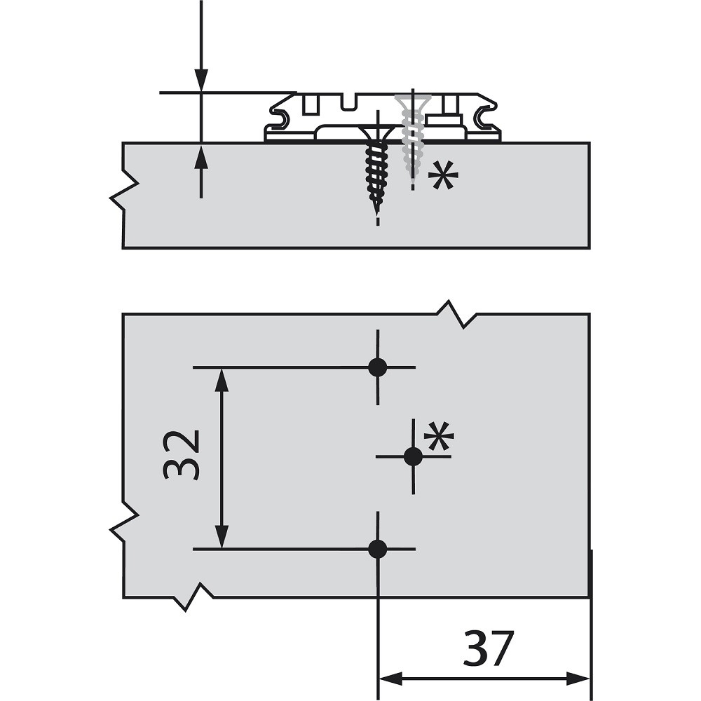 BLUM CLIP ONYX ekscentar podložna pločica, čelik, vijci, razmak 0 mm