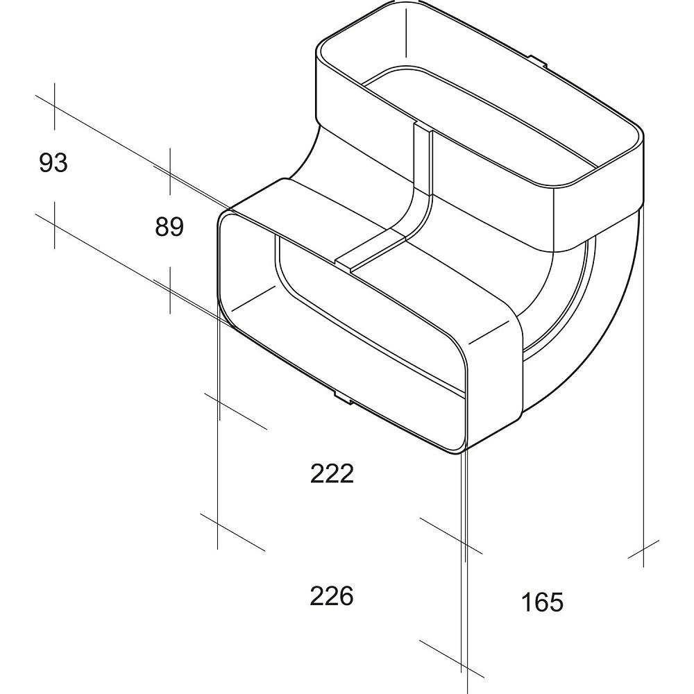 OPTIMAIRO ravni kanalsko koljeno 90° vertikalni 222 x 89 plastični bijeli