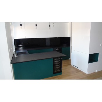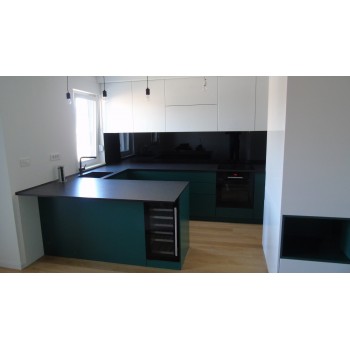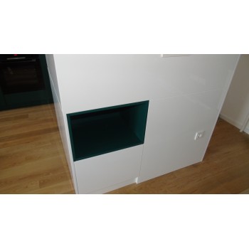 U izradi korišteni Egger dekori, kuhinjska fronta i vidljive strane larirani medijapan, Blum okovi.