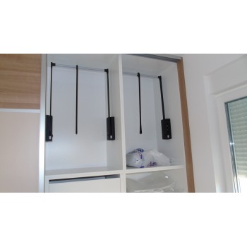Ugradbeni ormari Između ponuđenih opcija odaberite za vas najprikladniji način izrade ormara. Način opremanja - Walk in - garderobni sistemi namijenjeni su pohrani odjeće i obuće u za to namijenjenim prostorijama bez ormara. Na raspolaganju Vam je veliki broj mogućih kombinacija planiranja korištenja sistema kao što su ladice, police i izvlačne police, duga i kratka vješanja, vješanja u gornjim dijelovima prostorija s pomoć garderobnih liftova, držači za odjeću i obuću. Način opremanja - Free space. u izradi se koriste samo osnovni elementi koji čine ormar, stranice i police te korpusni ladčari. Ormar nema leđa, pod i plafon. Montaža se vrši na način da se ormar ugrađuje u prostor fiksno bez mogućnosti premještanja. Zidove i unutrašnje dijelove ormara potrebno je premazati vodo perivim bojama kako odjeća ne bi došla u doticaj sa vlagom ili sitnom prašinom koja pada sa nezaštićenih zidova. Način opremanja – Box + U opciji Box+ garderobni namještaj po mjeri izrađen je na način da se sastoji iz garderobnih segmenata. Za svaki Garderobni segment koriste se korpusi koji sadrže pod, plafon, zadnju stranicu te su izolirani u prostoriji, sa zadnje strane ormara kao i u podu i plafonu omogućena je cirkulacija zraka a odjeća se nalazi u korpusima koji je štite od doticaja s prašinom ili vlagom. U ponudi su brojni sistemi za pohranu odjeće. Kratka i duga vješanja, garderobni liftovi, nosači za hlače, nosači za kravate, ladićari, poličari i izvlačni poličari na raspolaganju su Vam za pogledati te se informirati o cijenama na linku okovi za namještaj i kuhinje Izbor boja i izložbene uzorke te izloženi namještaj pogledajte u našem salonu u Shoping Centru Prečko, etaža 1, lokal broj 130. U tijeku je izračun cijena za izradu namještaja po mjeri.