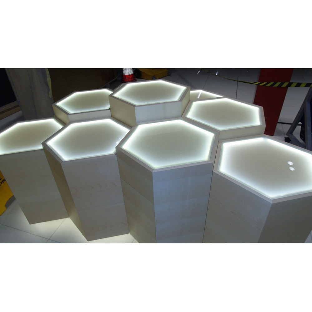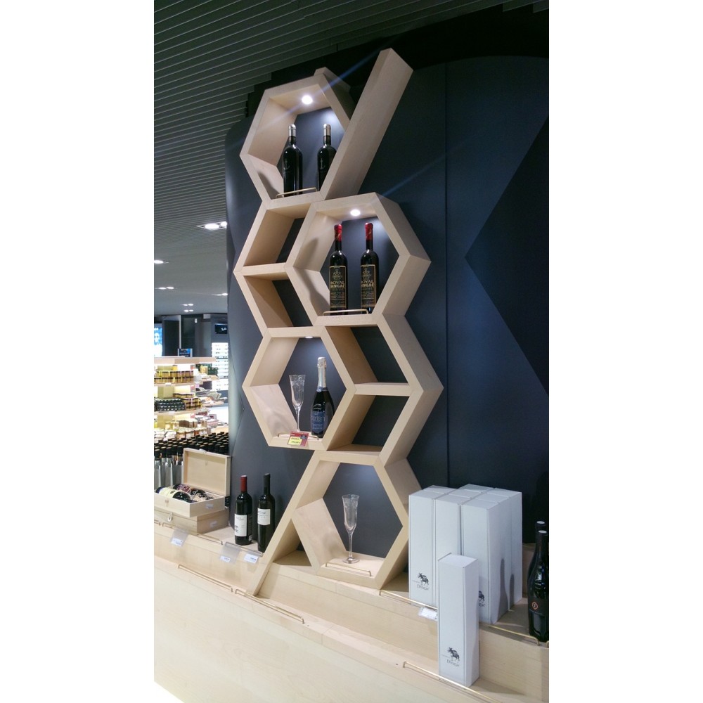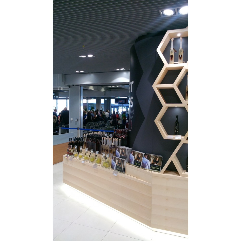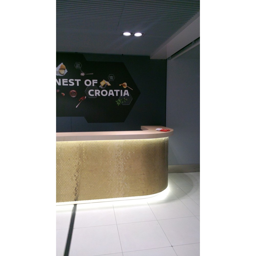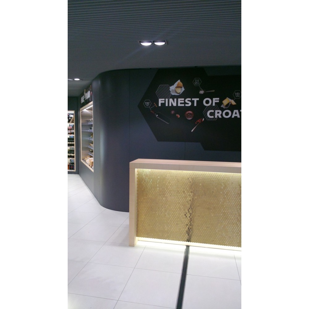 Furnirani namještaj izrađen po mjeri sa detaljima poliranog mesinga te ugrađenom led rasvjetom.