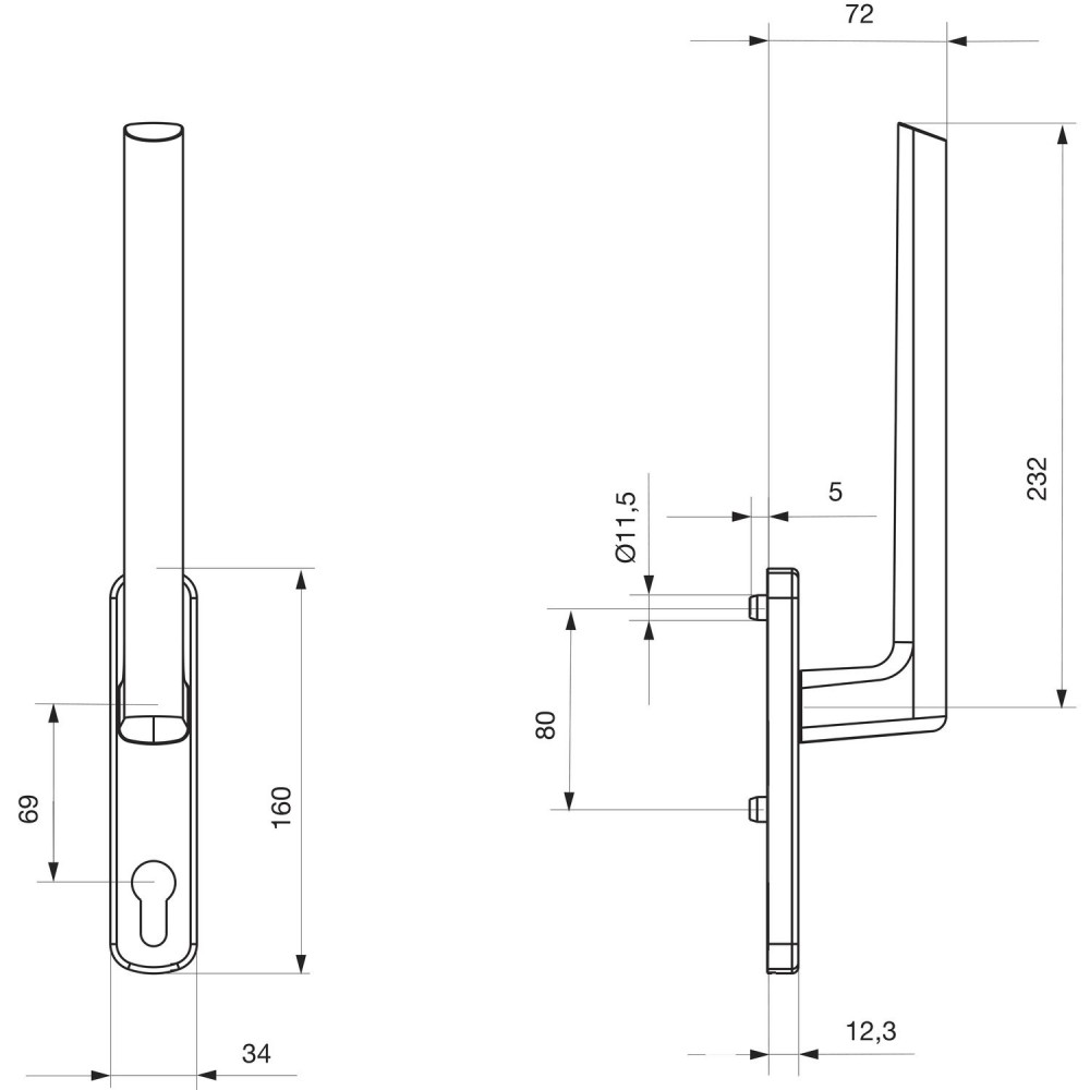 MACO HS ručka 12, PZ unutarnja, s noknama,VK-10 mm, alu srebrno eloks. (218403)