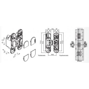 Spojnica za vrata K6700, univerzalna, zamak, poniklano mat