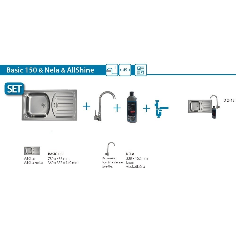 SET Alveus Basic 150 sudoper + Nela slavina + AllShine