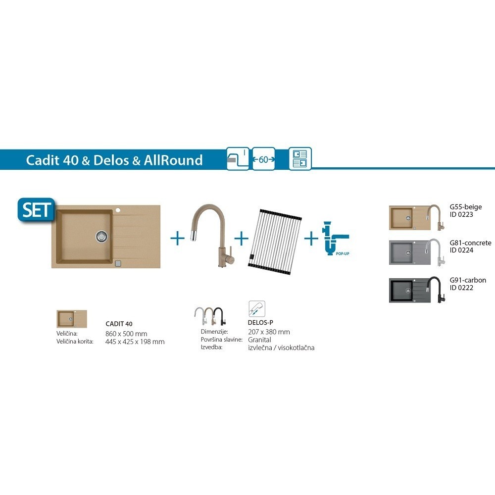 SET Alveus Cadit 40 sudoper + Delos slavina + AllRound podloga za sušenje