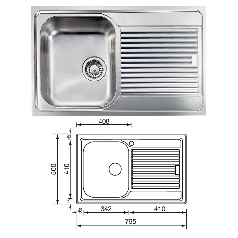 0112017 FILOSLIM 79×50 1V L sa sifonom (1 korito+ocjeđivač)