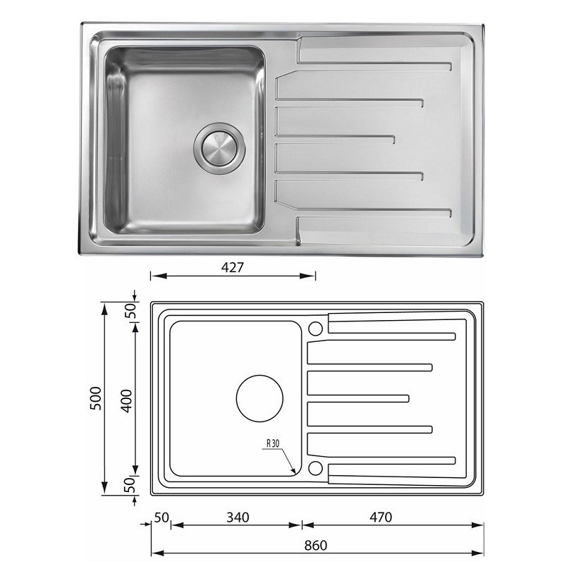 CM sudoper BRANDO 86×50 1V sa sifonom (1 korito+ocjeđivač) reverzibilno 015103
