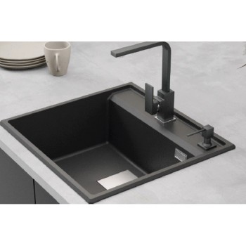 .GRANMASTER SET sudoper QUBE 60 sa slavinom i dispenzerom, granit crna metalik