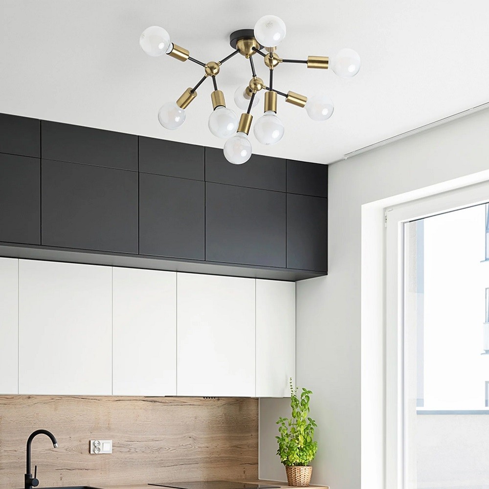 Rendl Light ARTEMIA 9 stropna crna brušeni mesing 230V LED E27 9x15W